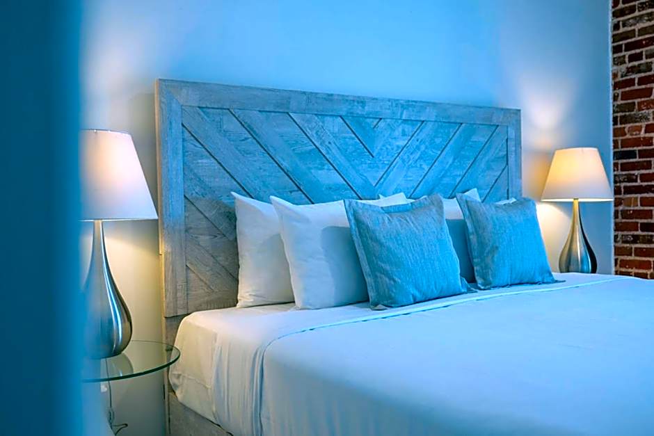 This suite features a bedroom with a king size bed, a sitting area with Murphy bed, a kitchenette, a bathroom with shower.